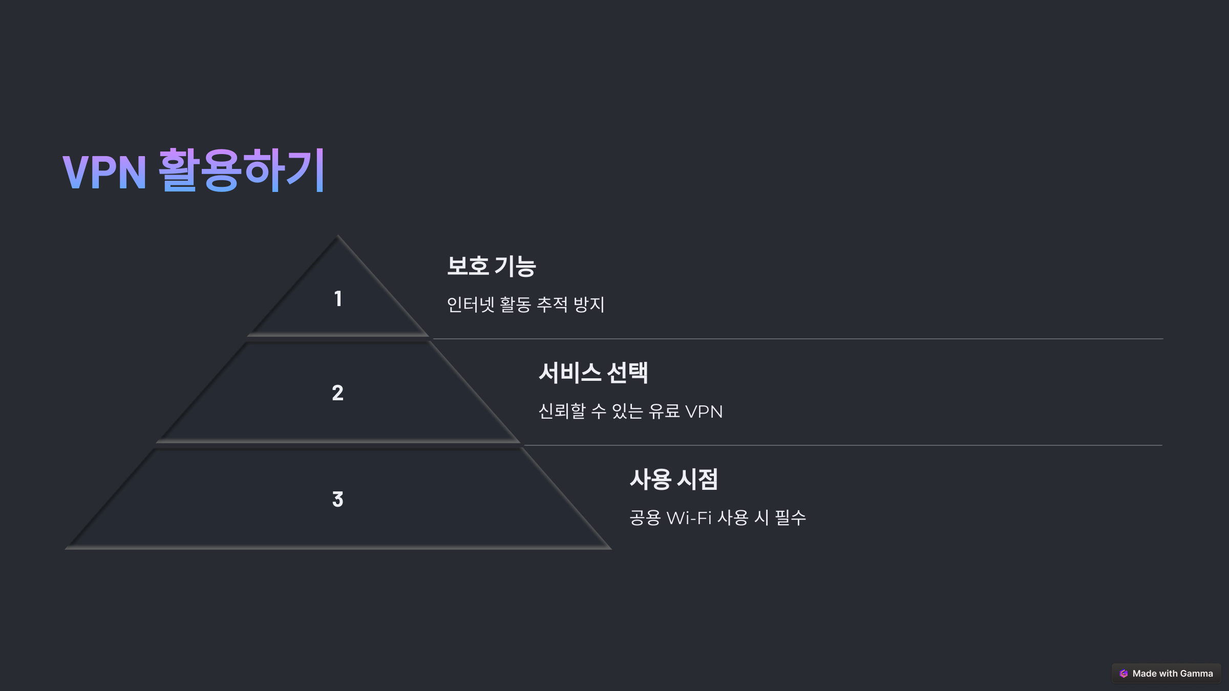 VPN(가상사설망)은 인터넷 연결을 암호화하여 보안을 강화하는 기술입니다. 특히 공용 네트워크에서 개인 정보를 보호하는 데 유용합니다.
