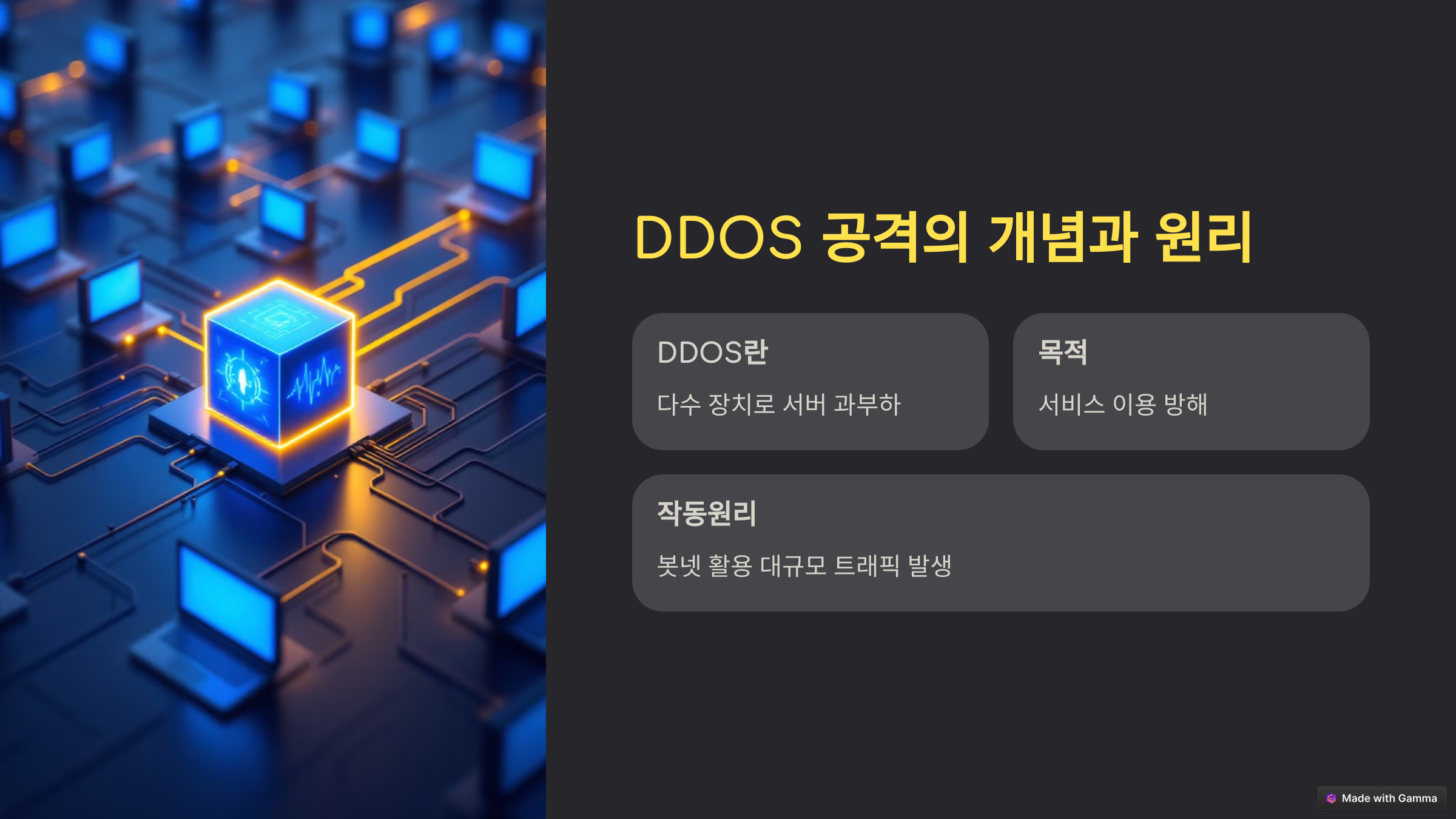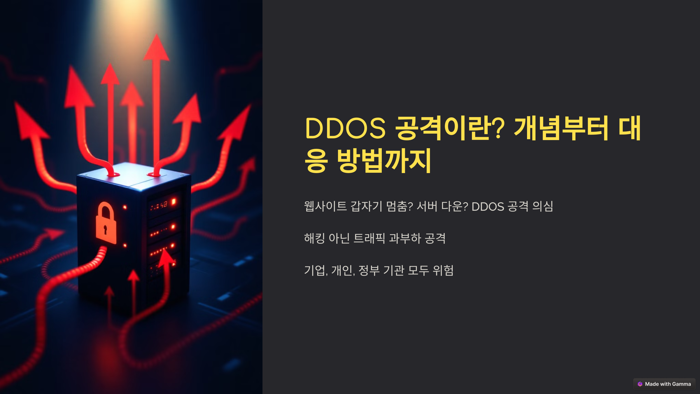"웹사이트가 갑자기 멈췄다? 수많은 접속이 한꺼번에 몰려 서버가 다운되었다?" 이런 경험이 있다면, DDOS 공격을 의심해봐야 합니다.