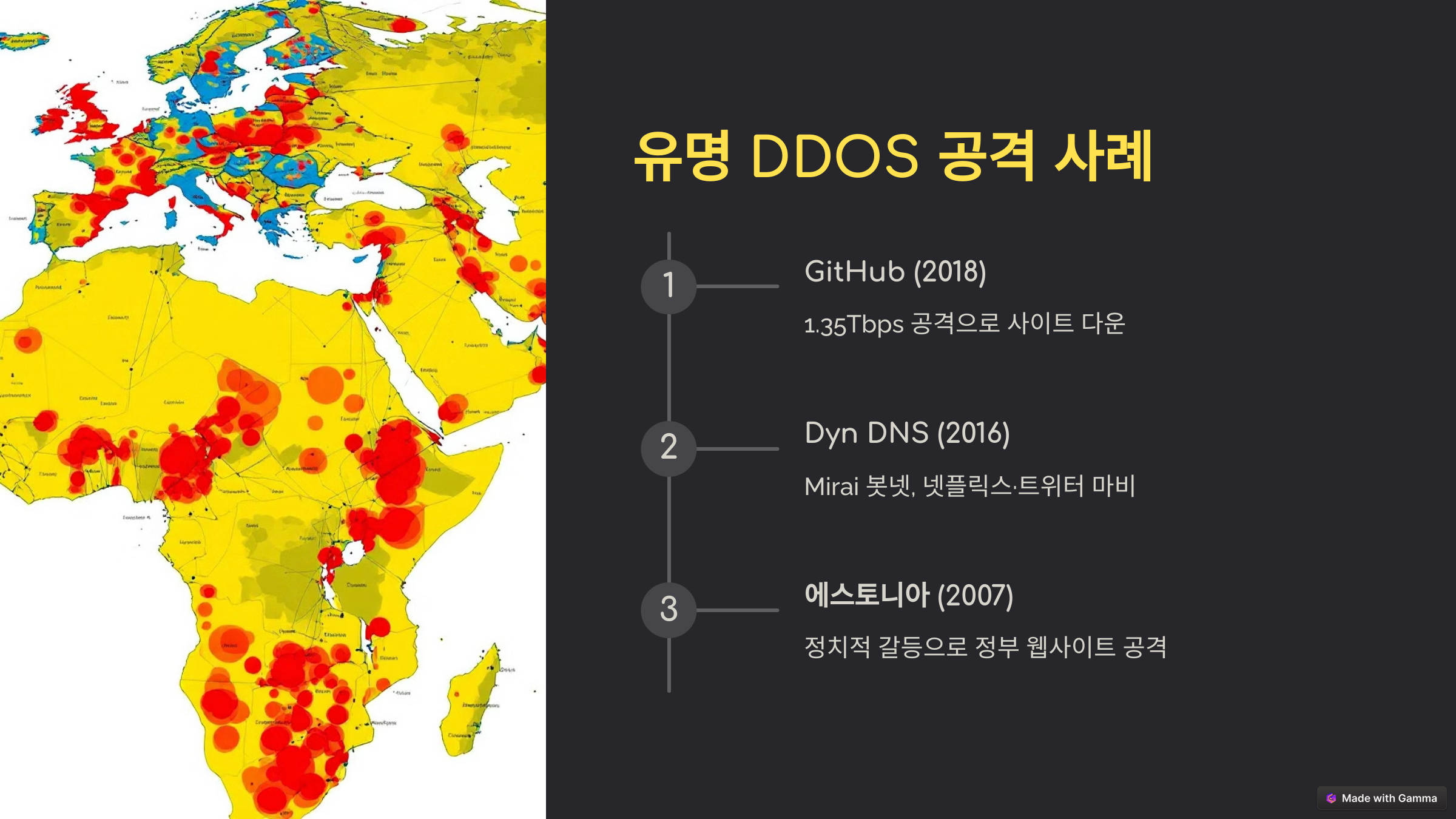 DDOS 공격은 수많은 사이버 공격 중에서도 기업과 정부 기관에 치명적인 피해를 줄 수 있습니다. 다음은 역사적으로 유명한 DDOS 공격 사례들입니다.